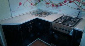 Фурнитура: фурнитура Samet, ручки рейлинг, газ-лифт, выдвижные ящики шариковые направляюшие, плинтус, цоколь, сушка хром, петли с доводчиком, мойка металл, подъемный механизм авентос BLUM, PUSCH OPEN