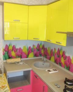 Фасады: МДФ ПВХ (пленка глянец) Желтый/Розовый