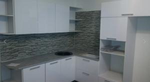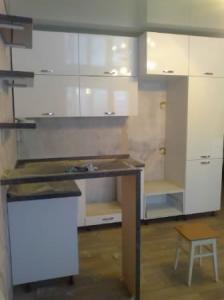 Фурнитура: фурнитура Samet, ручки рейлинг, газ-лифт, выдвижные ящики шариковые направляюшие, плинтус, цоколь, сушка хром, петли с доводчиком, мойка керамика, PUSCH OPEN