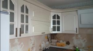 Фасад: МДФ ПВХ (пленка глянец) фрезеровка классика, с матовым стеклом
