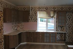 Кухонный гарнитур Г-образный: 3050х2100мм Корпус ЛДСП 16 мм Lamarty Орех Фасады: МДФ ПВХ (пленка текстура древесная) фрезеровка рамка Столешница 26мм Скиф (Россия) Фурнитура: фурнитура Samet, ручки рейлинг, газ-лифт, выдвижные ящики тандембокс, плинтус, цоколь, сушка хром, петли с доводчиком, мойка керамика