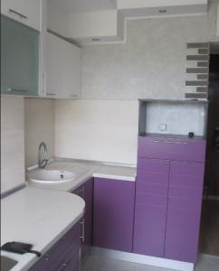 Фасады: МДФ Эмаль глянец Белый/Фиолетовый (фрезеровка)