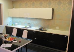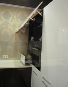 Кухонный гарнитур Г-образный: 4200х1800мм Корпус ЛДСП 16 мм Lamarty Белый Фасады: МДФ Эмаль 18мм Белый/Кофе Столешница 38мм Геталит (Германия) Стеновая панель закаленное стекло 5мм Фурнитура: фурнитура BLUM, ручки рейлинг, выдвижные ящики тандембокс, плинтус, цоколь, сушка хром, петли с доводчиком, мойка керамика, подъемный механизмы авентос BLUM