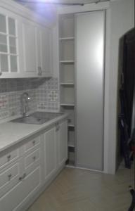 Кухонный гарнитур прямой: 3000мм Корпус: ЛДСП 16 мм Lamarty Белый Фасады: МДФ ПВХ (пленка матовая) фрезеровка классика Столешница: 38 мм Скиф (Россия) Фурнитура: Samet Турция, петли с доводчиком, мойка металл, сущка хром, ручки под старину, плинтус, цоколь, выдвижные ящики скрытого монтажа с доводчиком,